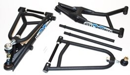 The Teixeira Tech XC Maximum Ground Clearance A-Arm Suspension Kit has been engineered to accept Long Travel Shocks. Teixeira Tech A-arms are constructed with quality welded Chromoly in a precision built jig and topped off with a wrinkle black powdercoat finish for the upmost in fitment and durability.